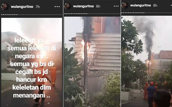 Dangduter, Jakarta – Aktris cantik Wulan Guritno panik sekaligus gregetan menyaksikan kebakaran di komplek tempat tinggalnya. Melalui Instagram Story, Wulan Guritno terlihat mengomel lantaran petugas PLN tak segera datang. Pasalnya, kebakaran tersebut berimbas pada kebocoran listrik.